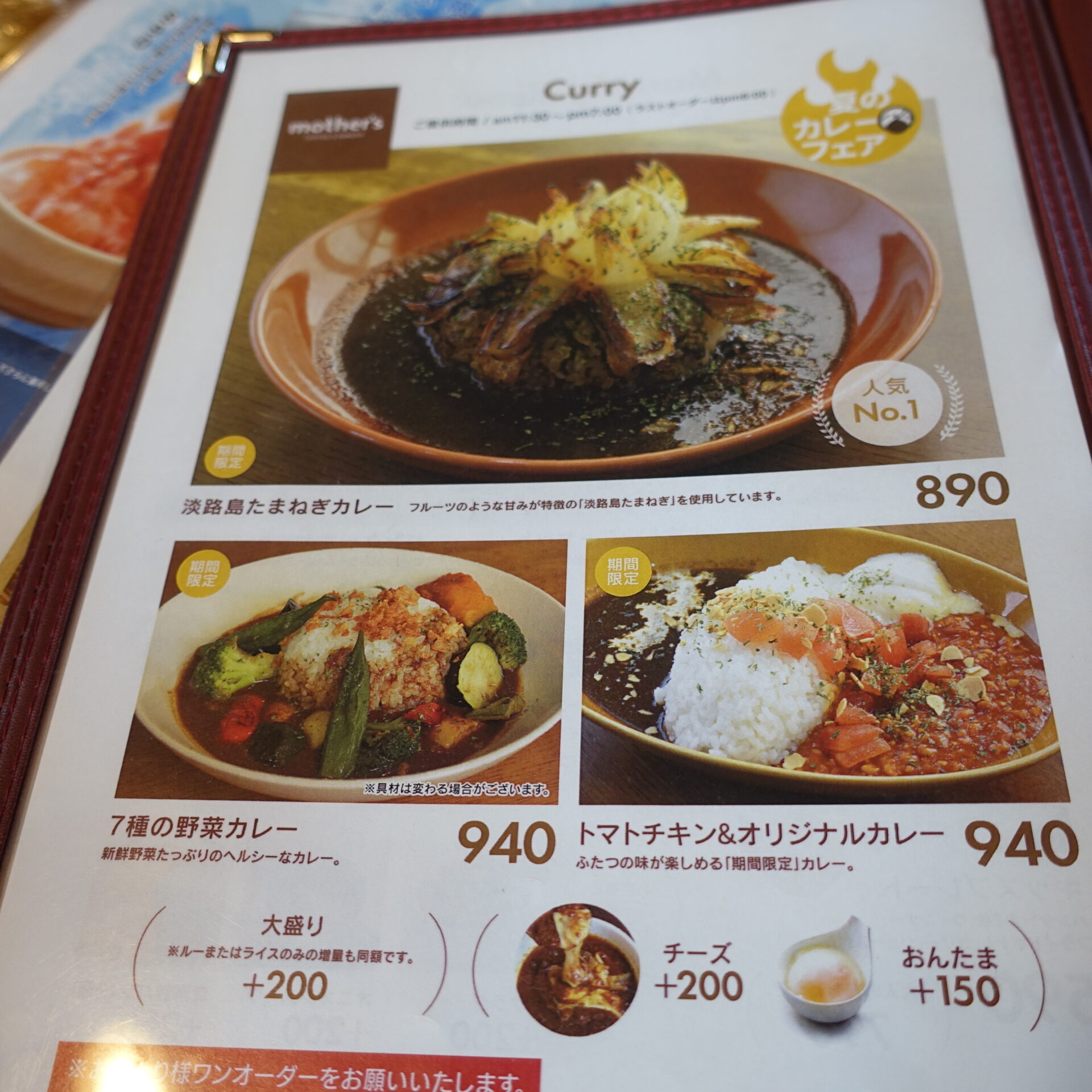 mother’s(マザーズ)のメニュー